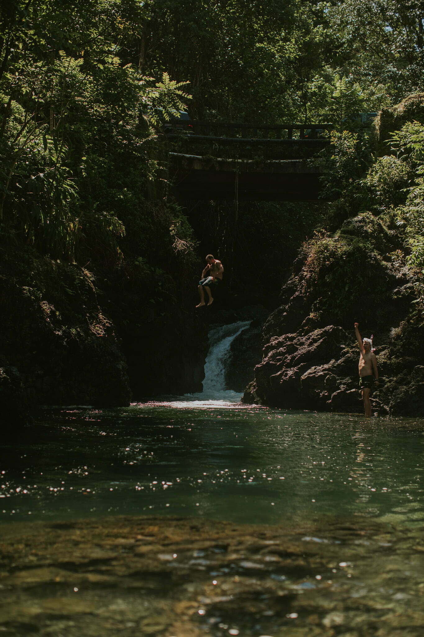 Navigating the Road to Hana wasn’t as scary as I expected. We only encountered two nerve wracking incidents in the 600 turns, 56 one lane bridges , 52 km-road in Maui. A highly recommended thing to see and do while visiting the Hawaiian island. Just two scary experiences where we had to stop in the middle of the road and adjust our car with only a few inches allowance from the ravine on our side. I would do it again, though. Unforgettable memories include the beautiful black sand beach, chasing waterfalls, pizza and awesome free wifi at Hana Farms Roadside Stand and Restaurant; the amazing tropical foliage and beautfiul cloudy skies and overusing the ‘shaka’ sign.